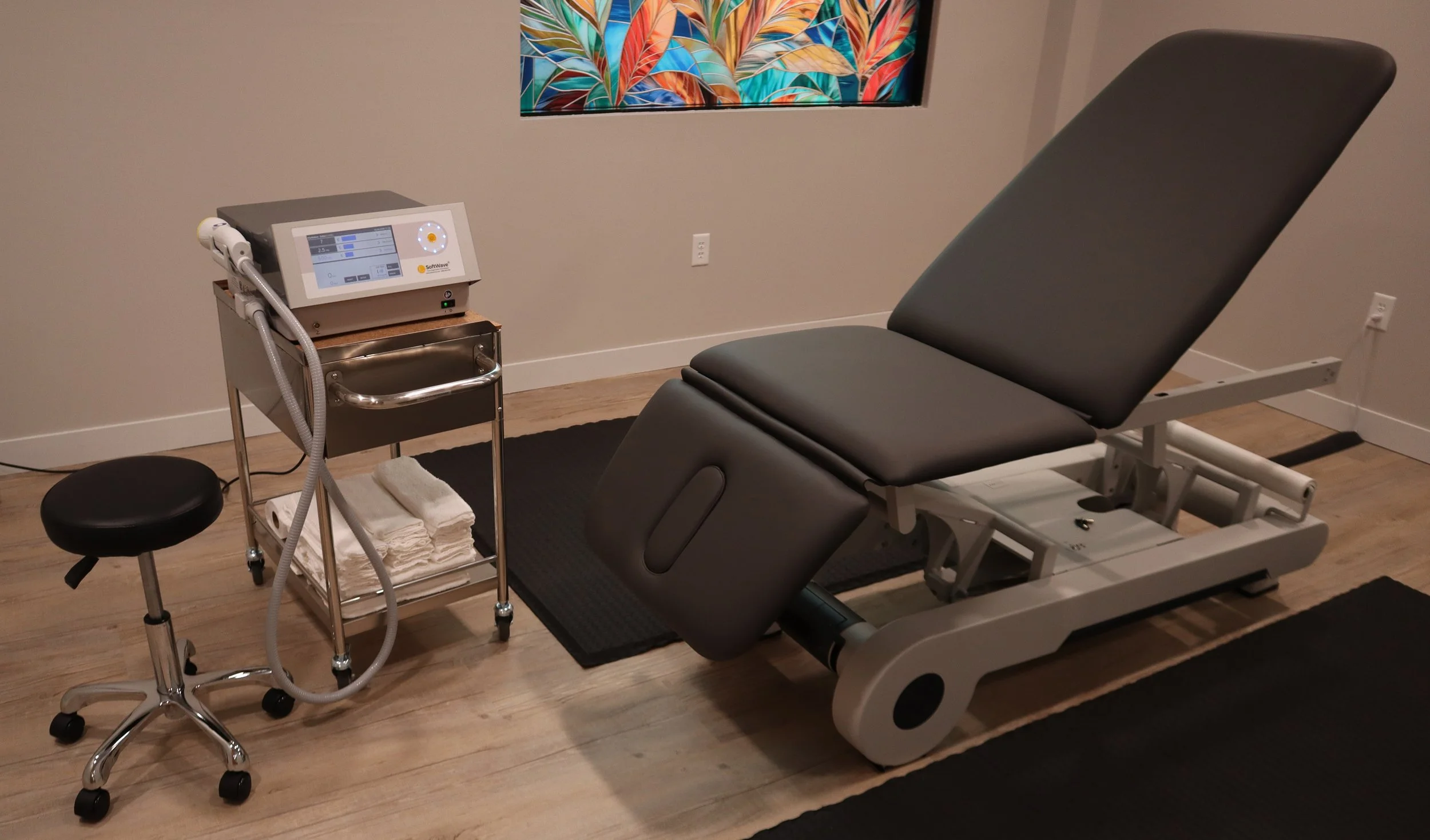 U.P. Kinetics primarily uses the FDA-cleared OrthoGold system from SoftWave Tissue Regeneration Technologies to treat pain noninvasively.